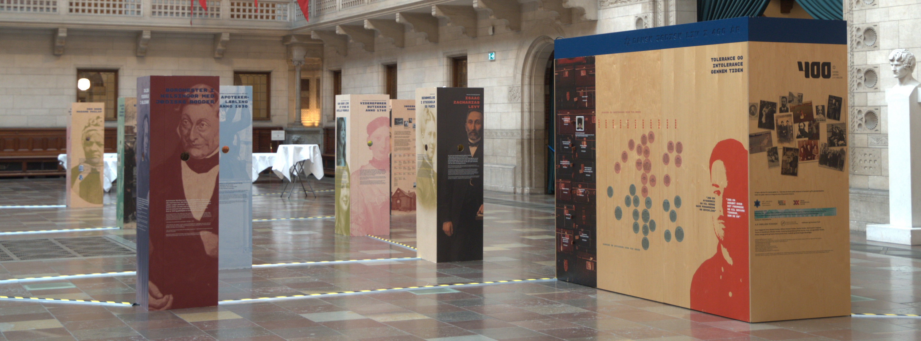 Udover den mere traditionelle 400 års tidslinje tegner udstillingen også en 400 års tolerance kontra intolerance tidslinje, hvor publikum kan aflæse højdepunkter og lavpunkter for tolerancen overfor jøder i Danmark. I fire interview med unge danske jøder sætter udstillingen også spørgsmålet om antisemitisme i dagens Danmark til åben debat.